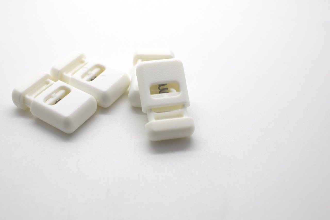 Small White Rectangle Spring Clasp Cord Stopper
